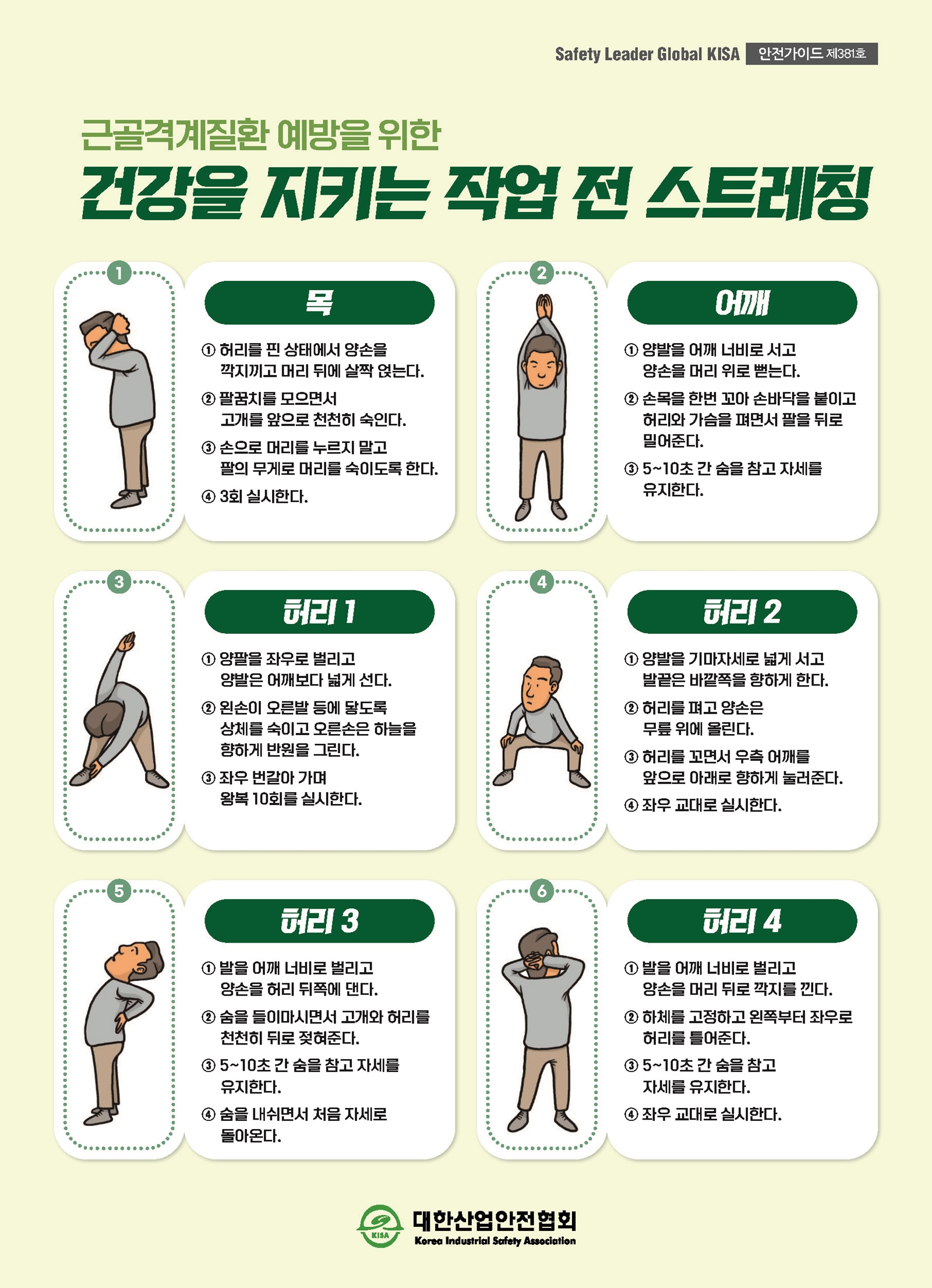 근골격계질환 예방을 위한 건강을 지키는 작업 전 스트레칭 ⓒ 대한산업안전협회 ∥ 무단도용, 복제 및 재배포 금지 제381호_근골격계질환 예방을 위한 건강을 지키는 작업 전 스트레칭.png