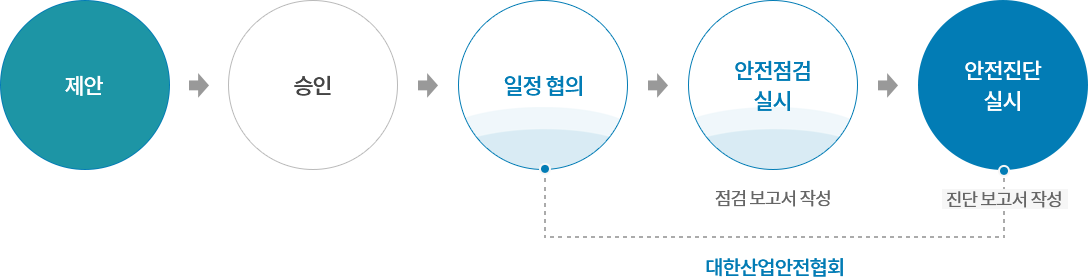 - 위험요인 발견 및 원인을 규명하여 대책을 수립하여 현장위험요소 개선