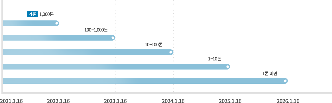 - 2022년 1월 16일 ~ 2023년 1월 16일 : 100~ 1,000 톤